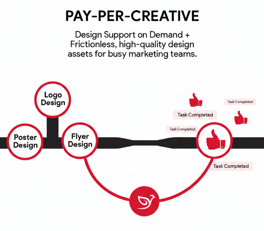 When your internal team is at capacity, don’t let your deadlines slip. Our Pay-Per-Project model allows you to tap into elite design talent exactly when you need it, ensuring your marketing momentum never slows down.
